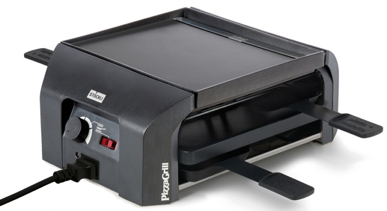 Multifunktionales Gerät für Pizza, Grill, Raclette und mehr. Basisgerät für vier Personen. Zusammen mit dem Endgerät kann die Kapazität auf insgesamt acht Personen erweitert werden. Mit zuschaltbarer Unterhitze, stufenlos regulierbare Oberhitze. Mit hochwertiger, zweilagiger antihaft-versiegelter Grillplatte mit Fettablauf, inklusive Parkdeck, vier Pfännchen und Spachtel und einem Pizza-Ausstecher. Technische Daten: 230 V, 870 W