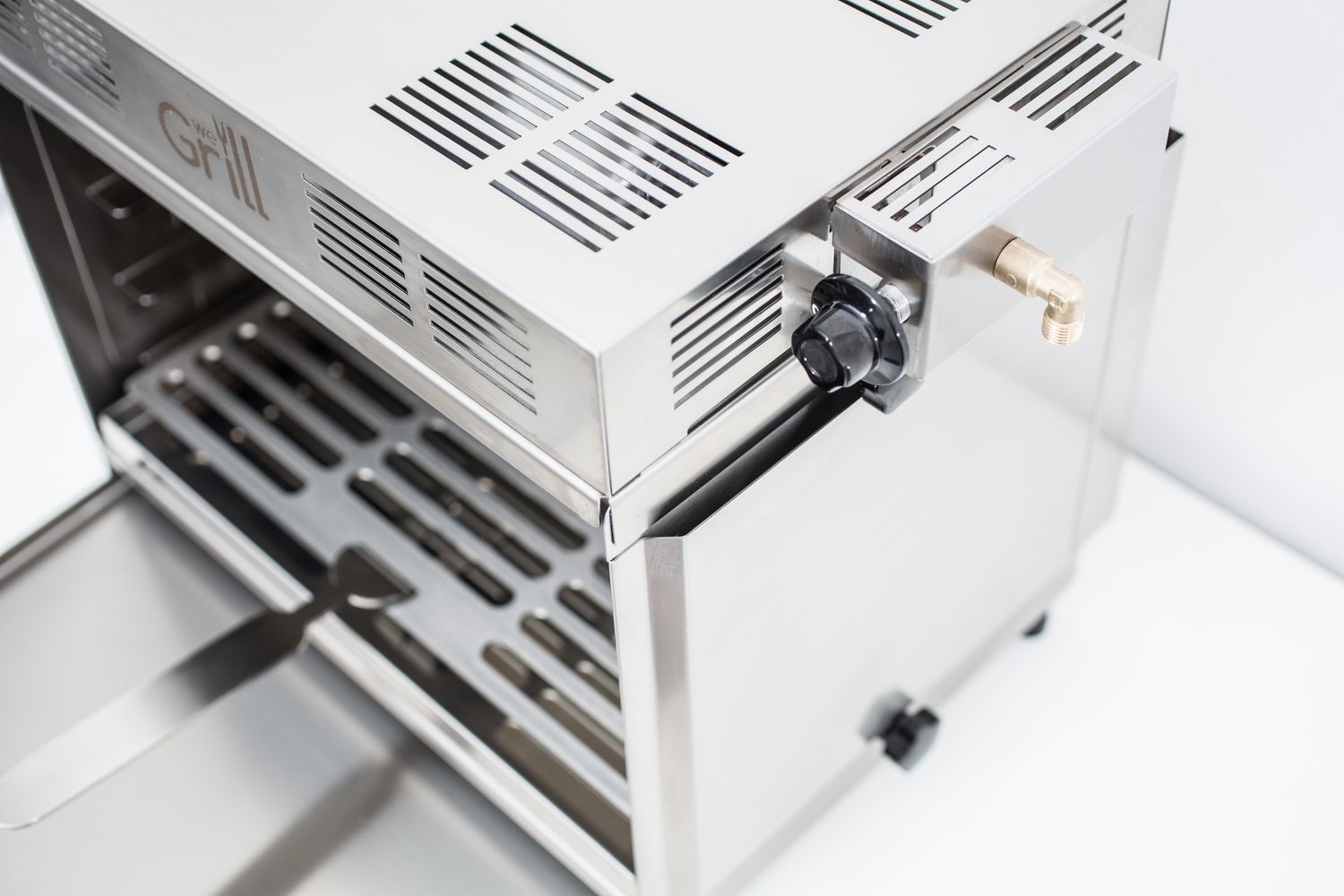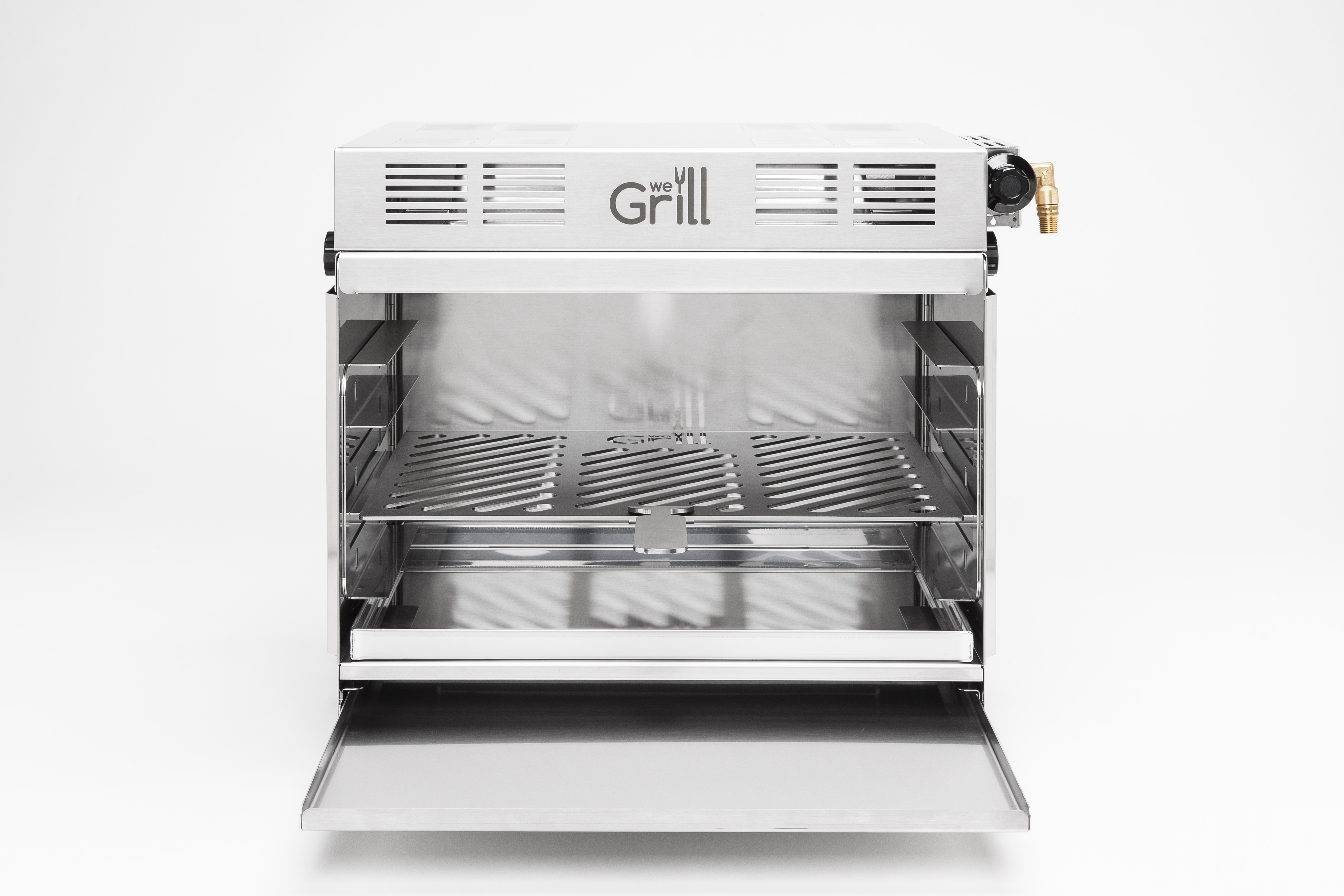 Der WeGrill ist der einzige rauchfreie Gasgrill, der durch das Infrarot-System die Wirkung des Holzkohlegrills reproduziert. Er grillt mit Wärmestrahlung bei einer Temperatur von bis zu 850 °C auf der Oberfläche der Brenner. Der WeGrill verkürzt so die Garzeiten und hebt den unverfälschten Geschmack der Speisen hervor, die sich stets als geschmackvoll, gesund und gaumenzart erweisen, da durch das schnelle Anbraten die Säfte im Grillgut eingeschlossen bleiben.