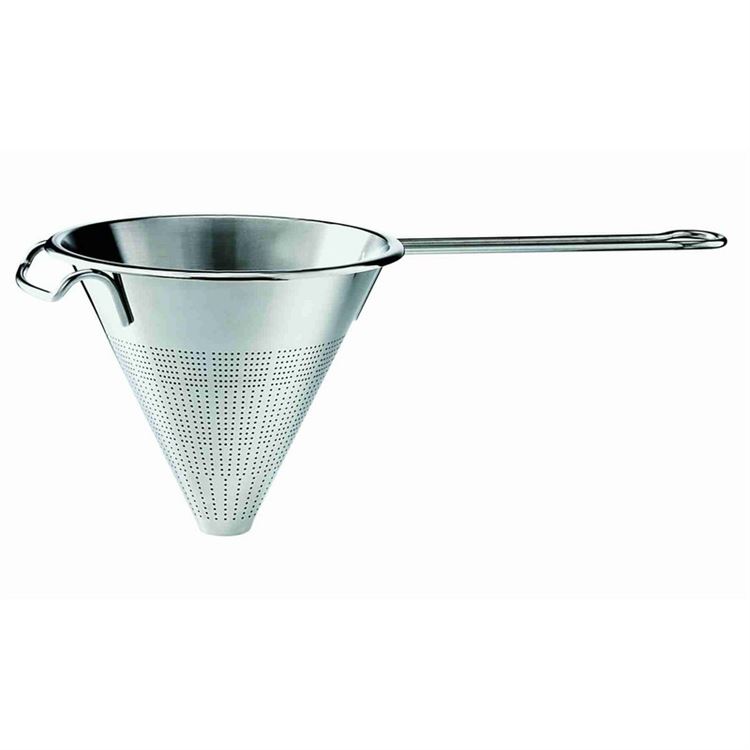 Das Spitzsieb aus Edelstahl von Rösle eignet sich hervorragend zum Abpassieren von Saucen oder Suppen und zum schnellen Aufwärmen oder Abschrecken.