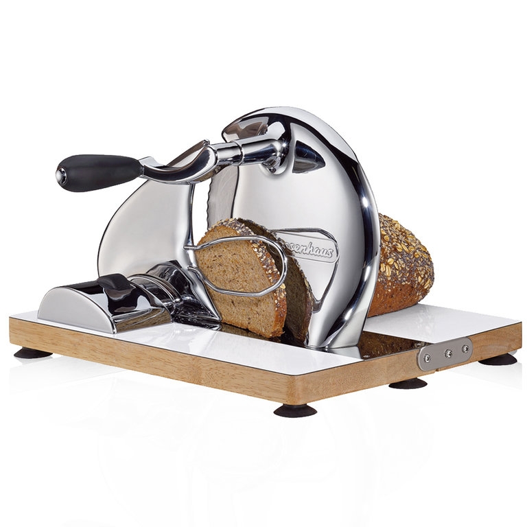 Wer sein Brot geschnitten kauft, kennt das Problem: Die letzten Scheiben sind häufig trocken, die Schnitten sind zu dick oder so dünn, dass sie beim Schmieren zerbröseln. Die manuelle Brotschneidemaschine von Zassenhaus schneidet da deutlich besser ab. Das extra scharfe Messer mit Wellenschliff liefert Ihnen so viele frische Scheiben, wie Sie gerade benötigen. Dank der Feineinstellung mit Skalierung können Sie die Stärke der Scheiben individuell an die Vorlieben der Familienmitglieder anpassen. Dann drehen Sie die leichtgängige Kurbel. Die handbetriebene Maschine im Retro-Design arbeitet schnell, präzise und nachhaltig, da sie keinen Strom verbraucht. Saugfüße sorgen für einen sicheren Stand, die Bodenplatte ist zur platzsparenden Aufbewahrung einklappbar, das Krümelfach hält Ihre Arbeitsplatte sauber. Apropos sauber: Die Vollmetallausführung der Maschine sieht nicht nur gut aus, sie erleichtert Ihnen auch die Reinigung.