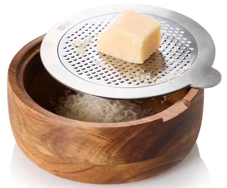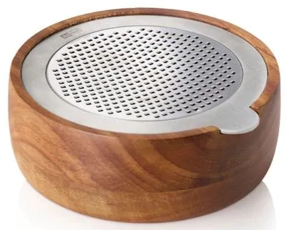 Die CUTNSERVE kommt mit einer stilvollen Schale aus Akazienholz, in der Sie die frisch geriebenen Zutaten direkt servieren können.