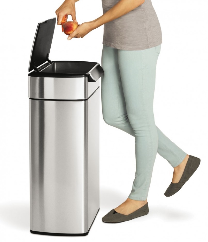 Dank Simplehumans touch-bar kann der Abfalleimer aus jedem Winkel einfach geöffnet werden, egal ob Sie ihn mit dem Ellenbogen, der Hüfte oder dem Knie anstoßn. Er bleibt genau so lange geöffnet wie Sie es benötigen – ideal bei der Vorbereitung von umfangreicheren Gerichten und längerem Arbeiten in der Küche.