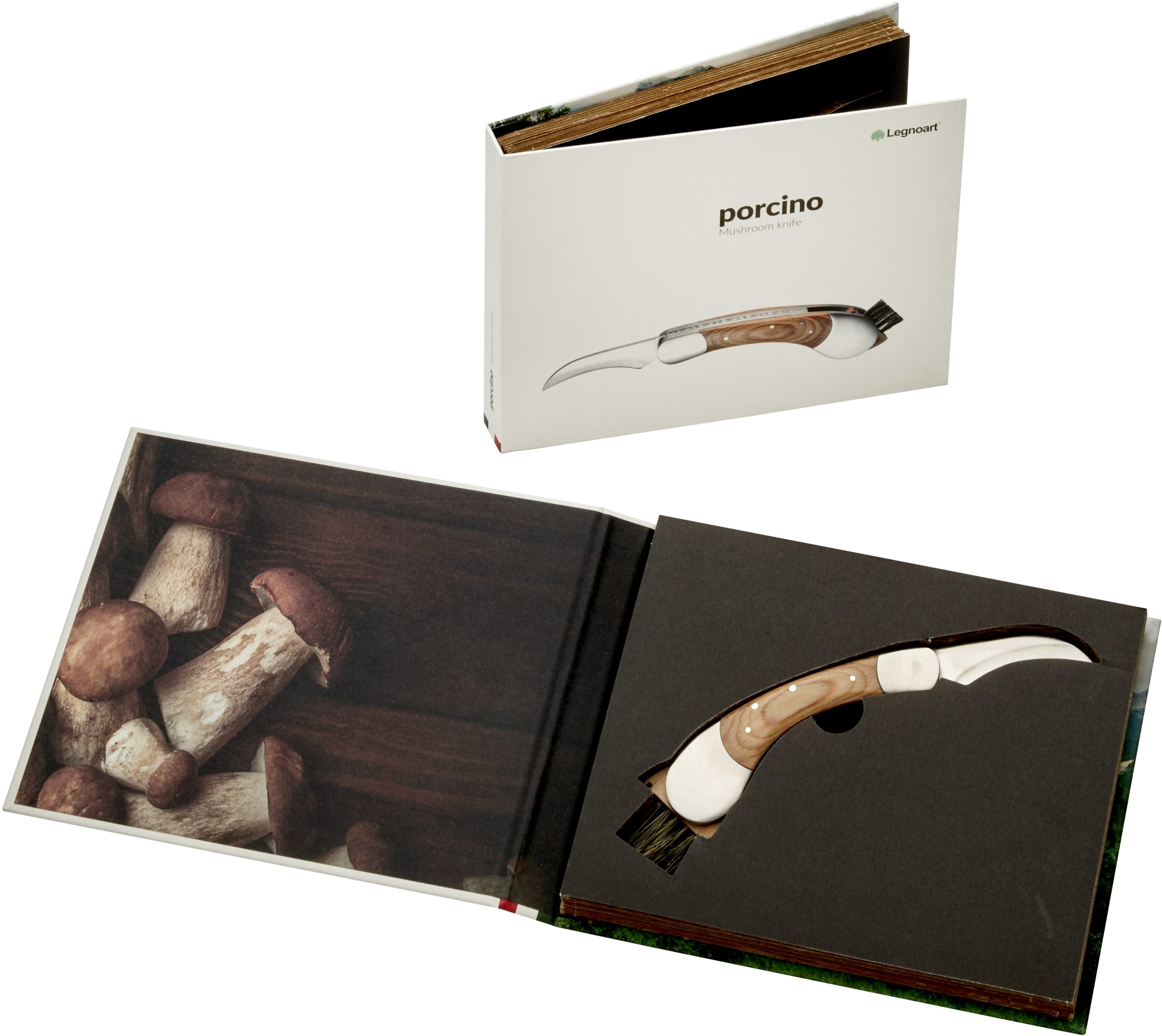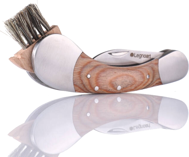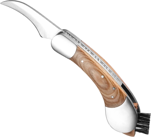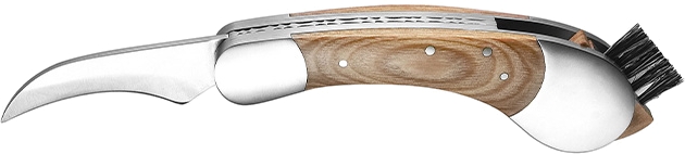 Das Pilzmesser Porcino vereint Funktionalität und Eleganz. Die Vogelschnabel-Klinge aus Edelstahl ermöglicht präzises Schneiden, während die faltbare Reinigungsbürste Erde und Schmutz mühelos entfernt.