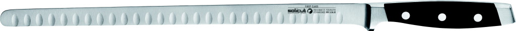 Das Lachsmesser mit Kulle der Serie FIRST CLASS, mit einer Klingenlänge von 32 cm, ist ideal um Lachs hauchdünn auf zu schneiden. Durch die Kullen entstehen kleine Luftpolster, die das Ankleben der dünnen Scheiben auf der 32 cm langen Klinge verhindern. So wird das Zubereiten von Lachs-Carpaccio zum Kinderspiel.