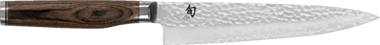 Hart, elastisch, präzise – die Klinge mit VG Max Stahl und 32 Lagen Damaszenerstahl. Beidseitig geschliffen, leicht, perfekter Schnitt. Tsuchime-Hammerschlagoberfläche für müheloses Lösen. Symmetrischer Griff für Links- und Rechtshänder, durchgehender Erl für Stabilität. Griffende mit Tim Mälzer Bullenkopf. Shun Premier von KAI – Präzision, Ästhetik, Perfektion!