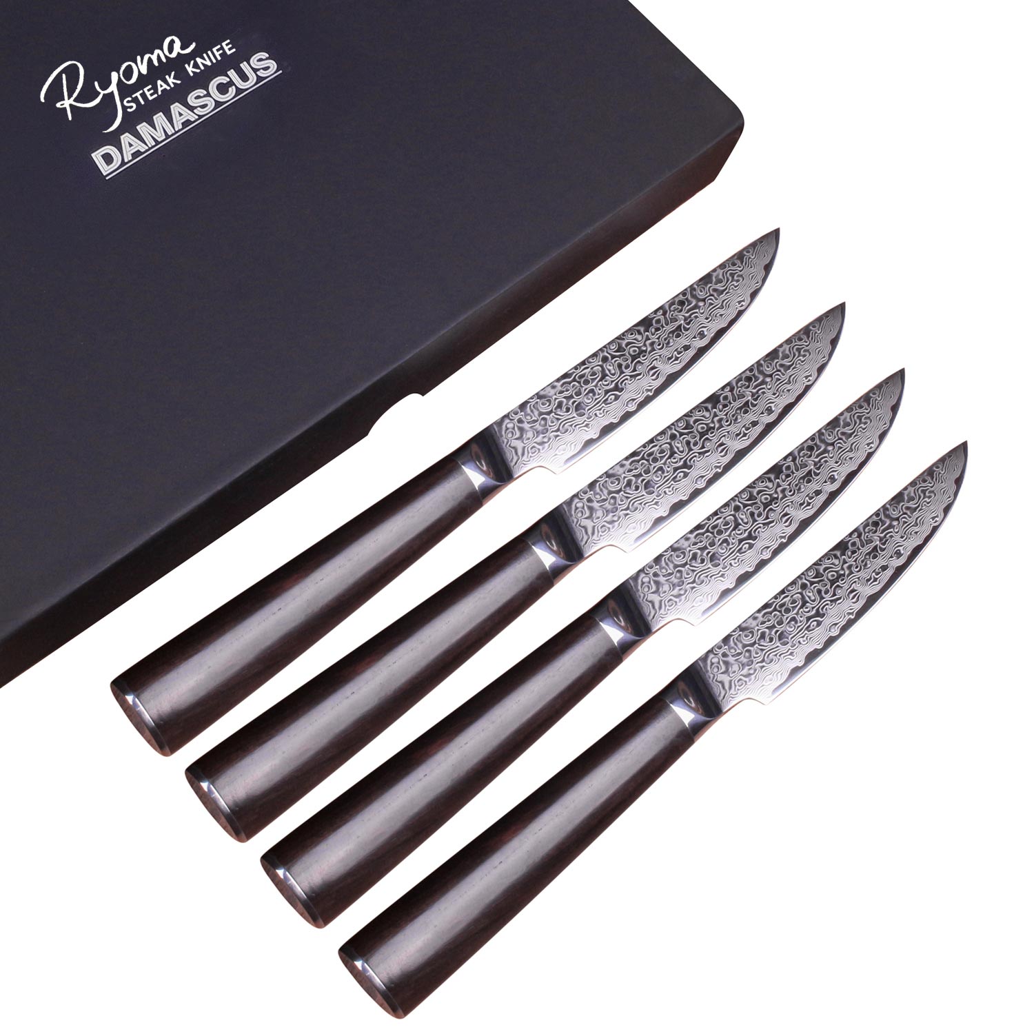 Die neue Ryoma - Steakmesser Serie ist der perfekte Begleiter und Helfer bei einem guten Steak. Das Messer wird als 4er-Set geliefert und kommt in einer schönen Box bei Ihnen an.