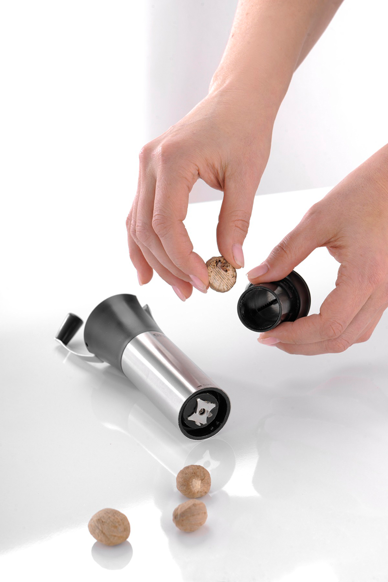 - sicheres Befüllen mit max. 1 Muskatnuss durch Einrast-Funktion