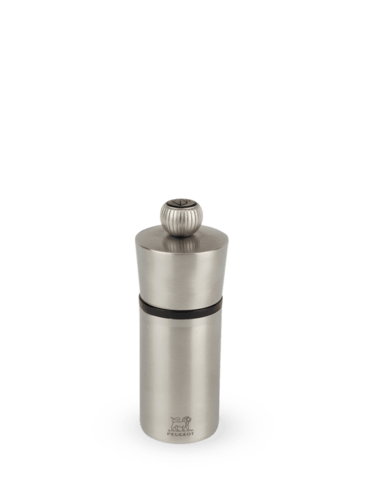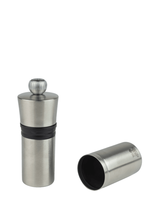 Entdecken Sie die kompakte Gewürzmühle von Peugeot – der perfekte Begleiter für alle Pfefferliebhaber, die auch unterwegs nicht auf frisch gemahlenen Pfeffer verzichten möchten. Diese elegante Mühle ist mit Inox verkleidet und kommt in einer schützenden Filztasche, sodass sie überallhin mitgenommen werden kann.