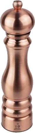 Die Paris Chef Salz- und Pfeffermühle variiert die Konturen der typischen Peugeot-Mühle in einer verkupferten Edelstahlausführung. Eine Profi-Mühle als optimaler Begleiter beim Würzen Ihrer Gerichte.
