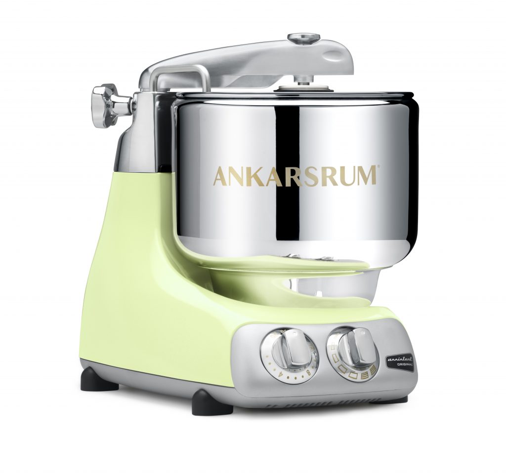 AKR 6230 .. Jede Ankarsrum Küchenmaschine ist mit einem Basispaket ausgestattet, die Ihre Arbeit in der Küche leichter macht und Ihnen wertvolle Unterstützung bietet; vom Sandkuchen bis hin zum Sauerteigbrot. Der unglaublich leise Motor läuft mit einer Leistung von 1500W, mit einer siebenjährigen Garantie, kontinuierlicher Drehzahlregelung und Timer. Die Knöpfe sind aus Chrom-Zink, um eine bessere Festigkeit und Komfort zu gewährleisten. Die Ankarsrum Küchenmaschine kann bis zu 5 kg Teig gleichzeitig kneten.