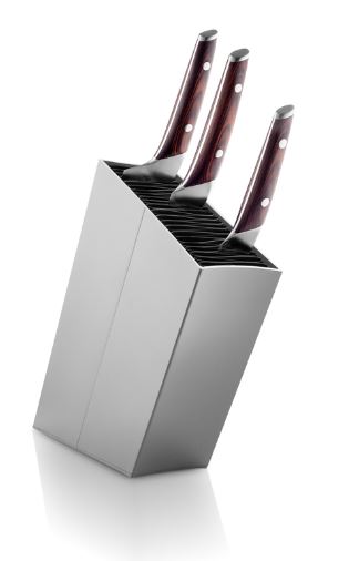 Für alle Arten von Messern und für viele Küchenhelfer geeignet. Aluminium-Gehäuse mit lamellenförmigem Kunststofeinstaz, zur Reinigung entnehmbar. Die Lamellen sind Spülmaschinenfest, das Metall darf nur per Hand abgespült werden.
