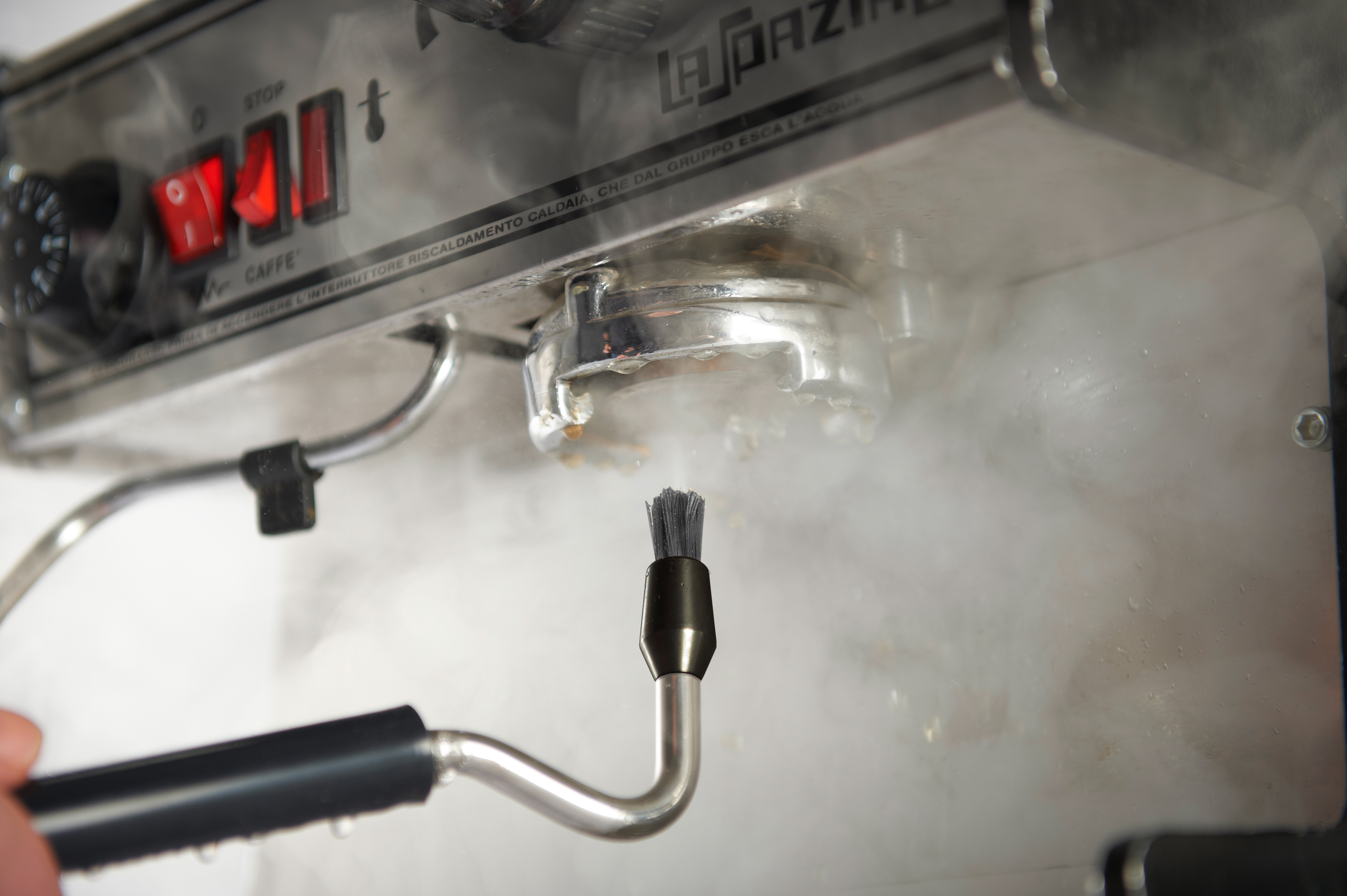 An jeder Siebträgermaschine einfach den Schlauch an die Dampflanze anschließen und schon können Sie den verkrusteten Kaffeeresten zu Leibe rücken.