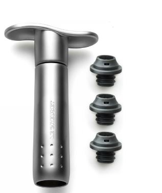 Die Weinpumpe WA-137 ist ein nützliches Accessoire, um geöffnete Rotweine aromadicht wieder verschließen zu können. So kann der gute Tropfen", den Sie nicht ganz ausgetrunken haben, für die nächste Gelegenheit wieder professionell verschlossen werden. Inklusive 3 Weinverschlüsse. Zusätzliche Weinverschlüsse sind separat erhältlich.