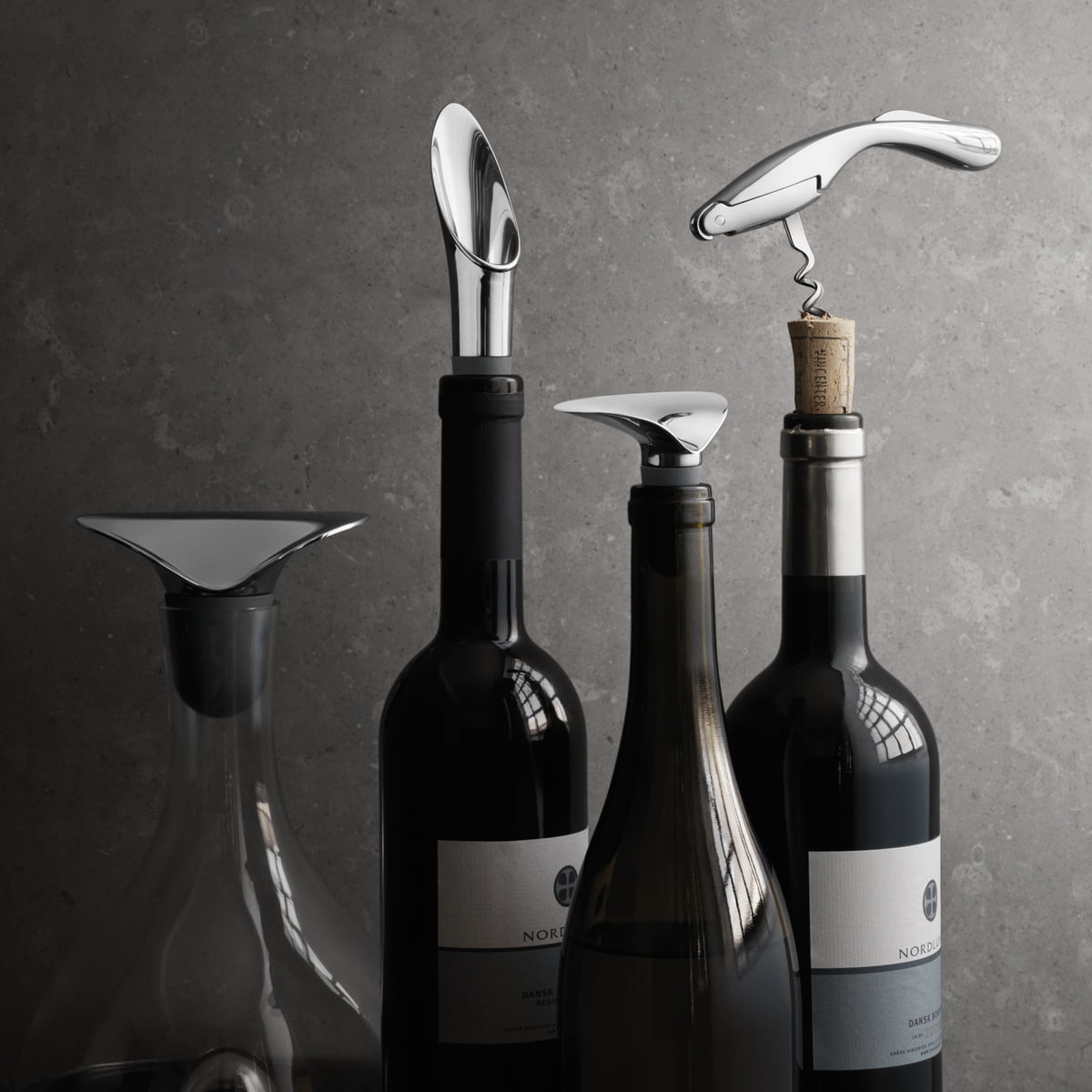 Auch ein Korkenzieher, eine Weinkaraffe und weitere Produkte gehören zu der Wine & Bar-Serie von Thomas Sandell: Georg Jensen spricht mit dieser edlen Kollektion jeden weinkundlichen Aspekt an. Weinliebhaber finden in dieser Serie Produkte, die stilistisch und funktional eine würdige Hommage an die grandiose Welt des Weins sind.