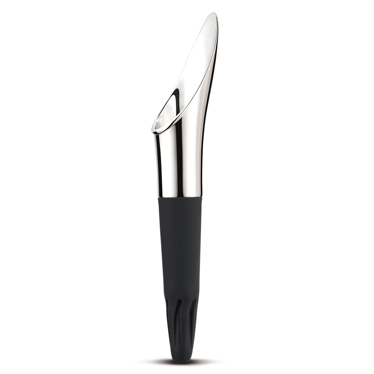 An der Oberseite ist der Ausgießer im selben weichen Design gestaltet, das auch den Rest der Wine & Bar-Serie von Georg Jensen auszeichnet: Die fließende Form, eingefasst in hochglanzpoliertem Finish, setzt Akzente auf edel gedeckten Tischen. Die Funktion steht hinter der von Thomas Sandell gestalteten Form nicht zurück: Der Dekantierausgießer verfügt über die patentierte OxiPour™-Funktion, die eine richtige Lüftung des Weins gewährleistet.