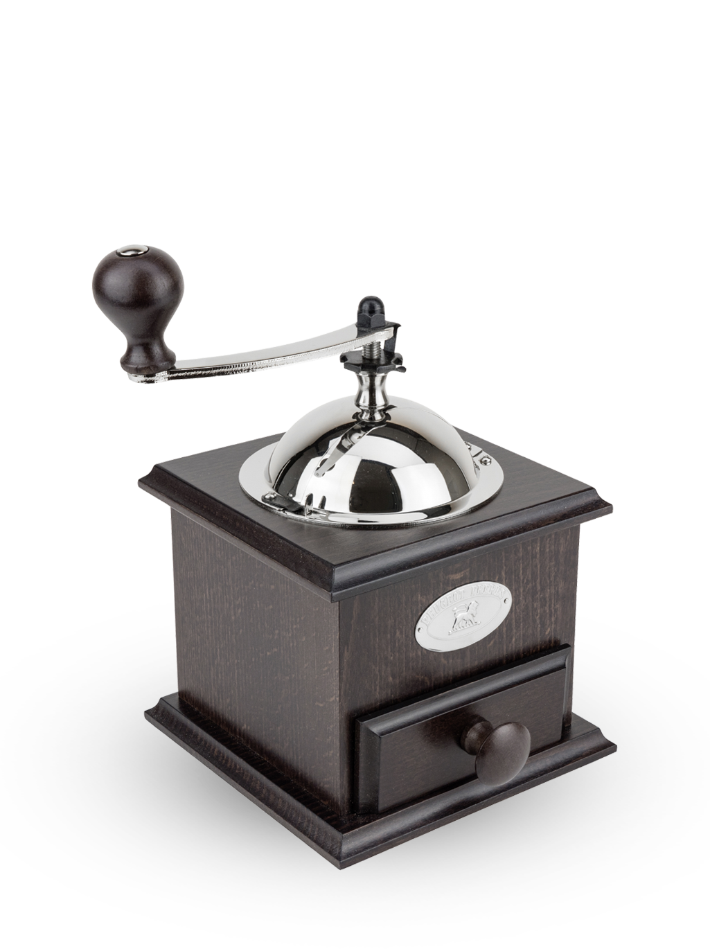 Kaffee entfaltet dann ein Aroma und einen bis dahin ungeahnten Geschmack, der schnell unverzichtbar wird. Mit ihrem geschlossenen Einfülltrichter ist die Peugeot Kaffeemühle ,Nostalgie" eine Anspielung auf traditionelle Kaffeemühlen. Hinter dem antiken Look versteckt sich ein leistungsfähiges Mahlwerk aus Stahl, auf das in Deutschland eine 25-jährige Garantie gewahrt wird, zum präzisen Mahlen von Kaffee unter vollkommener Wahrung der Qualität der Bohnen. Die Kaffeemühle Nostalgie ist ein herrliches Gerät aus lackiertem Buchenholz. Diese quadratische Kaffeemühle aus Holz verfugt über ein kleines Schubfach, das den frisch gemahlenen Kaffee auffängt. Der Mahlgrad wird über das Rädchen unter der Kurbel eingestellt. Sie können den Mahlgrad nach Belieben einstellen: sehr fein für einen Espresso, gröber für Mahlgrad ganz nach einem Kaffee nach französischer Art.