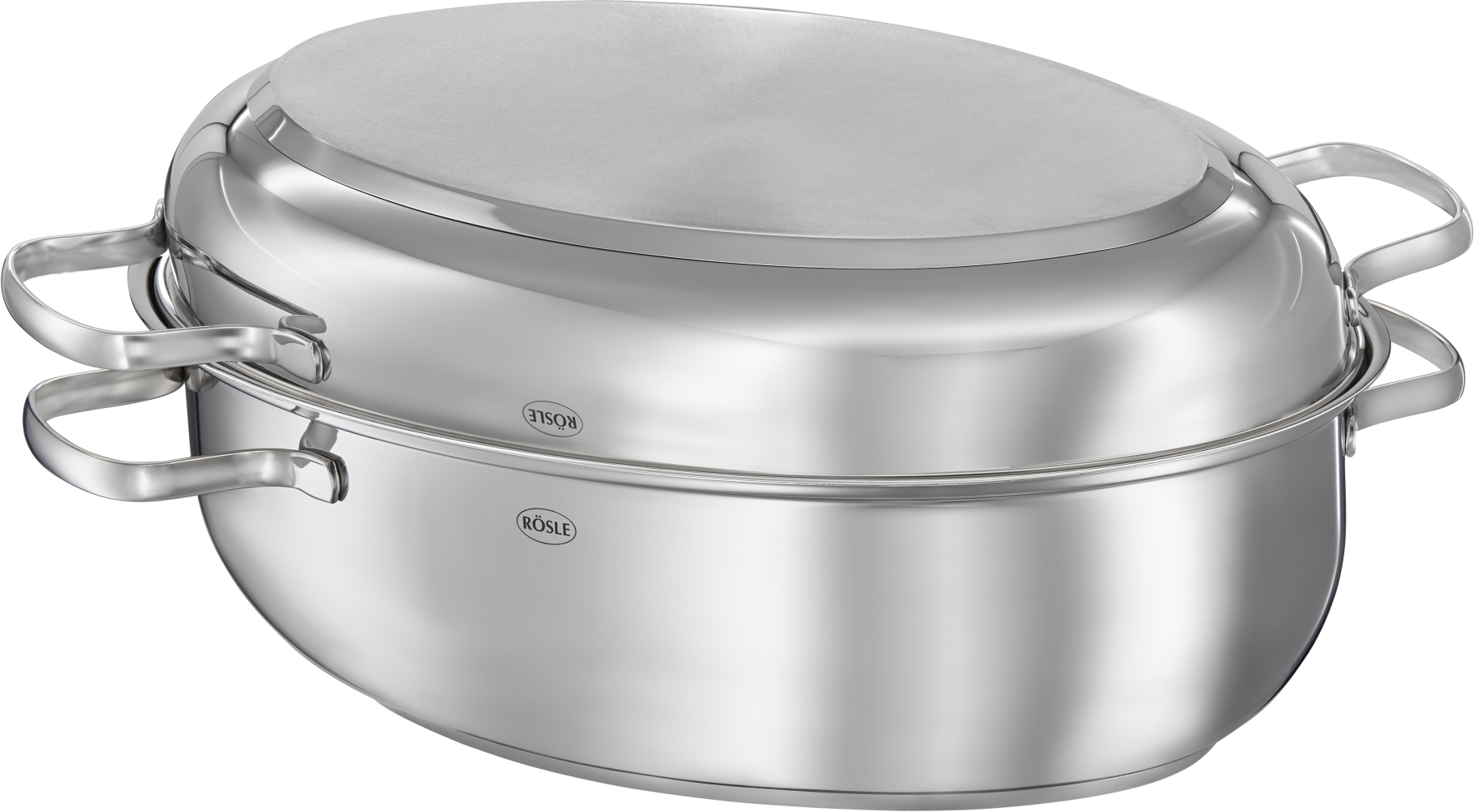 - Bräter oval mit Multifunktionsdeckel, aus Edelstahl 18/10