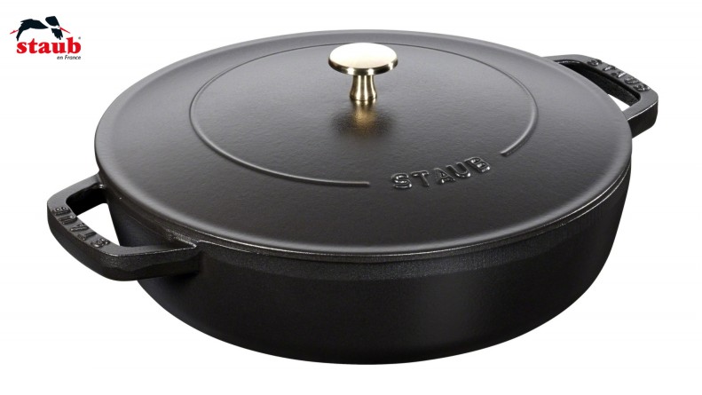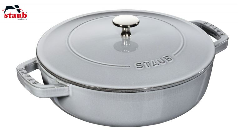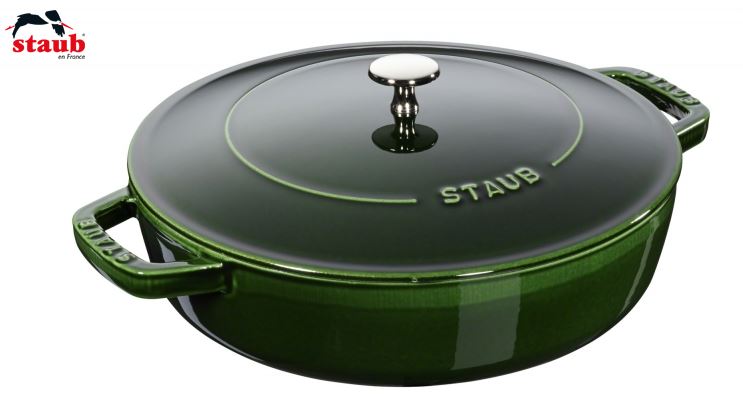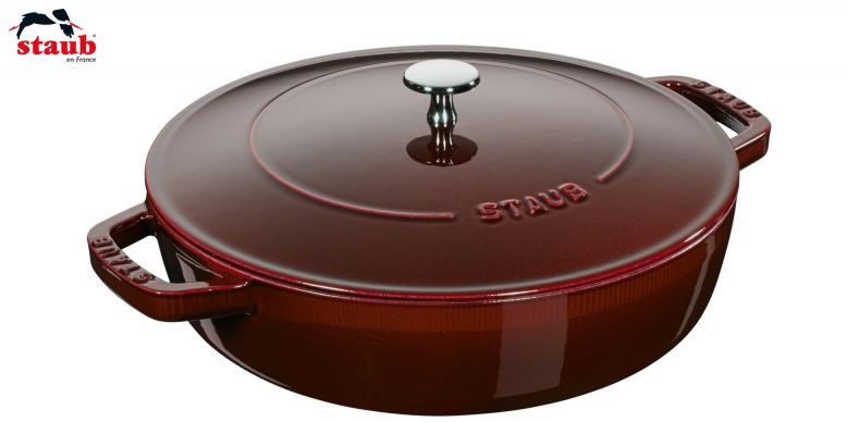 Der runde Multifunktionsbräter von Braisers aus dem Hause Staub eignet sich zur Zubereitung von Braten, Gemüsegerichten oder Ratatouille. Der gusseiserne Bräter sorgt durch seine schnelle Wärmeaufnahme auf dem Herd für ein scharfes Anbraten. Gusseisen ist für seine lange Wärmespeicherung bekannt. Mit dem ansprechend designten Kochgeschirr können Sie Ihre Gäste über die gesamte Mahlzeit hinweg mit leckeren, warmen Speisen versorgen. Einer der innovativsten Entwicklungen von Staub ist der Deckel, in dessen innerer Wölbung sich die Chistera Drop Structure befindet, die das Kondenswasser sammelt und gleichmäßig an das Gargut abgibt. Auf diese Weise gelingen saftige, zarte Fleischstücke und aromatische, herzhafte Gemüsegerichte. Der Multifunktionsbräter wurde in Grenadine gestaltet. Der satte, tiefe Farbton passt besonders gut zum Landhausstil und bringt einen Hauch ursprünglicher Kochtradition in die Küche. Die Emaillierung des Gusseisens verhilft dem Kochgeschirr von Staub zu einer verbesserten Widerstandsfähigkeit und ist darüber hinaus leicht zu reinigen. Der größte Vorteil jedoch liegt darin, dass sie im Laufe der Zeit immer stärker den Geschmack der im Bräter zubereiteten Speisen unterstützt. Der Anti-Haft-Effekt erleichtert zudem das fettarme Anbraten und Kochen. Der Bräter mit Chistera-Deckel misst 24 cm bzw. 28 cm im Durchmesser und ist für alle Herdarten geeignet. Bereiten Sie in diesem Multitalent für die Küche schmackhafte und gesunde Speisen für die gesamte Familie zu.