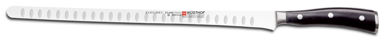 - Mit der langen, flexiblen Klinge lässt sich der Lachs hauchdünn aufschneiden.