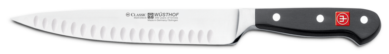 - Durch die Kullen entstehen Luftpolster, die das Ankleben von dünnen Scheiben auf der Klinge verhindern.
