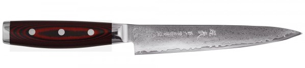 Das Yaxell Filetiermesser ist ein handgefertigtes Meisterwerk mit einer herausragenden Schneidleistung. Mit einer Klingenlänge von 18 cm und einer Klinge aus SG2 Microcarbid-Pulverstahl, der eine beeindruckende Härte von HRC63 auf der Rockwell-Skala aufweist, bietet es eine außergewöhnliche Stabilität und Präzision. Die Klinge besteht aus einer auffälligen Damaststahl-Musterung, verstärkt durch 161 zusätzliche Schichten unterschiedlicher Stähle, um die Langlebigkeit zu gewährleisten. Das Messer ist mit dem japanischen Namen sowohl auf der Klinge als auch am Griffende graviert. Der elegante Griff aus schwarzem Leinwand-Micarta ist mit drei Edelstahlnieten befestigt und sorgt für einen sicheren und komfortablen Halt. Das Yaxell Filetiermesser ist ein perfektes Werkzeug für präzises Filetieren und bietet Ihnen ein erstklassiges Schneiderlebnis.