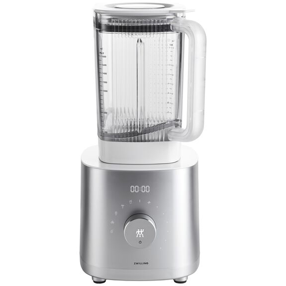 Die perfekt aufeinander abgestimmte Kombination aus hochwertiger ZWILLING Edelstahlklinge, leistungsstarkem 1600-Watt-Motor und optimierter Behälterform sorgt für ideale Pürierergebnisse. Der 1,8-Liter-Mixbehälter aus BPA-freiem Tritan ist auch für große Portionen geeignet. Er ist bruchfest und kälte- sowie hitzebeständig – die Reinigung per Hand oder ganz einfach mit dem integrierten Reinigungsprogramm wird empfohlen. Auch die Oberflächen des Profi-Blenders sind durch das moderne One-Button-Design mit integriertem Display leicht zu reinigen. Durch die eingebaute Sicherheitsfunktion lässt sich der Hochleistungsmixer nur mit Deckel betreiben – so besteht keine Verletzungsgefahr.