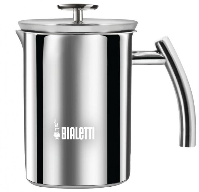 Dieser manuelle Cappuccinobereiter mit seinen patentierten, doppelten Schlagscheiben sorgt für eine perfekt aufgeschlagene Milchcreme.
