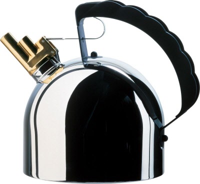 Der von Richard Sapper entworfene Edelstahlkessel 9091 18/10 war der erste von Alessi's "Designerkesseln". Um das übliche anxiogene Geräusch von Kesseln zu vermeiden, stattete Sapper den 9091 mit einer melodischen Pfeife aus, die aus Messing besteht und aus zwei kleinen Stimmzungen besteht, in die Choräle eingelegt sind, die die Töne mi und si reproduzieren. Wenn der Dampf austritt, erzeugen die beiden Chorsänger eine süße kleine Melodie. Der Zylinder 9091 ist ein multisensorisches Objekt, das nicht mit einer Pfeife, sondern mit einer umhüllenden Melodie eine Vergnügungspause unterbricht.